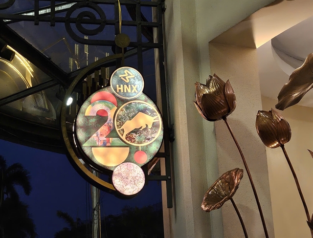 WHERE IT HAPPENS: The logo of the Hà Nội Stock Exchange is seen outside its building on Phan Chu Trinh Street. VNS Photo Ly Ly Cao