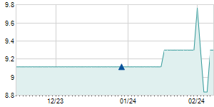 Closing price on 2/9/2022