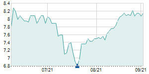 Closing price on 8/14/2020