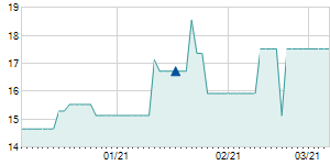 3/19/2021 -0.05 / -0.35% 14.35 14.40 14.25 14.30 14.34 13.07 55,000