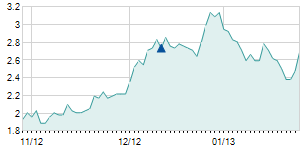 | 8/3/2017 | -0.20 / -8.33% | 2.40 | 2.40 | 2.20 | 2.20 | 2.27 | 2.20 | 946,049 |   |