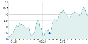 Closing price on 2/29/2016