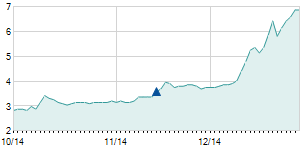 | 10/29/2014 | +0.60 / +4.23% | 14.10 | 14.80 | 13.90 | 14.80 | 14.53 | 6.47 | 568,000 |   |