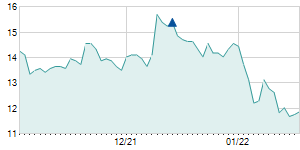 | 12/12/2014 | +1.60 / +10.00% | 16.00 | 17.60 | 15.90 | 17.60 | 17.31 | 7.69 | 1,612,744 |   |