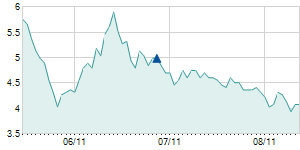 | 4/12/2017 | -0.20 / -1.29% | 15.40 | 15.50 | 15.20 | 15.30 | 15.26 | 6.47 | 1,663,670 |   |