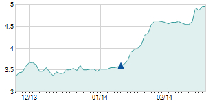 Closing price on 1/15/2013