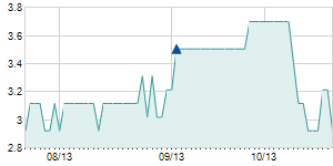 | 8/13/2014 | +0.10 / +2.17% | 4.70 | 4.80 | 4.60 | 4.70 | 4.70 | 4.70 | 889,350 |   |