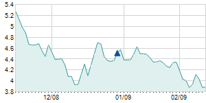 Closing price on 2/15/2005