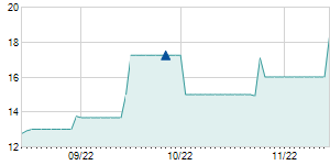 | 1/18/2013 | +0.90 / +4.50% | 19.00 | 20.90 | 19.00 | 20.90 | 20.90 | 16.33 | 112,230 |   |