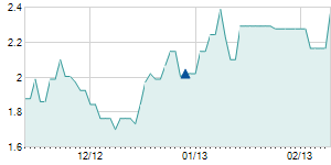 | 3/28/2005 | -0.20 / -1.20% | 16.50 | 16.50 | 16.40 | 16.40 | 16.40 | 6.90 | 3,620 |   |