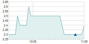 | 7/28/2017 | -1.50 / -9.68% | 16.10 | 16.10 | 14.00 | 14.00 | 15.05 | 7.28 | 200 |   |