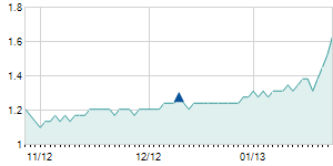 Closing price on 2/8/2013