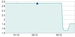 | 6/4/2012 | -2.10 / -4.78% | 43.40 | 43.40 | 41.80 | 41.80 | 41.80 | 16.80 | 161,990 |   |