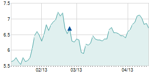 | 8/9/2012 | -0.20 / -0.42% | 47.00 | 47.60 | 46.10 | 47.30 | 47.30 | 7.58 | 28,210 |   |