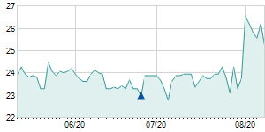 Closing price on 8/28/2020