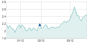 Closing price on 1/6/2012