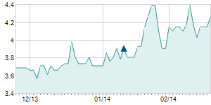 Closing price on 2/13/2008