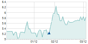 Closing price on 2/9/2022