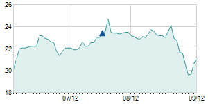 Closing price on 8/31/2012