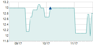 | 10/11/2010 | +0.30 / +3.45% | 8.70 | 9.00 | 8.70 | 9.00 | 8.90 | 9.00 | 143,500 |   |
