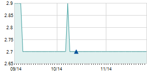 | 12/19/2014 | 0.00 / 0.00% | 27.70 | 27.70 | 27.50 | 27.60 | 27.60 | 2.42 | 5,200 |   |