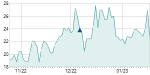 4/18/2022 -0.30 / -1.20% 25.60 26.00 24.70 24.70 25.50 18.74 5,700