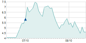 | 10/23/2014 | -0.80 / -6.50% | 12.90 | 13.10 | 11.50 | 11.50 | 11.50 | 4.61 | 5,160 |   |