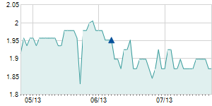 | 10/27/2014 | +0.80 / +6.50% | 13.10 | 13.10 | 13.10 | 13.10 | 13.10 | 5.25 | 4,620 |   |