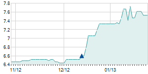 Closing price on 12/3/2012
