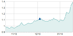 Closing price on 3/14/2012