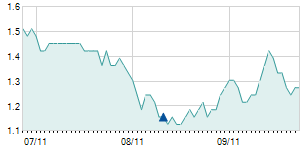 | 9/23/2010 | -1.90 / -6.33% | 28.10 | 28.10 | 28.10 | 28.10 | 28.10 | 9.30 | 4,100 |   |