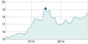 Closing price on 9/13/2017