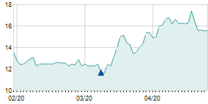 Closing price on 2/13/2020