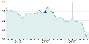 8/28/2018 -0.65 / -1.75% 37.20 37.20 35.00 36.55 36.54 16.99 111,480