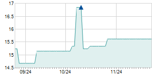 | 10/13/2009 | -0.70 / -4.43% | 15.30 | 15.80 | 15.10 | 15.10 | 15.80 | 15.10 | 122,470 |   |