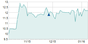 | 5/18/2010 | -0.30 / -2.50% | 11.80 | 12.00 | 11.70 | 11.70 | 11.80 | 11.70 | 82,900 |   |