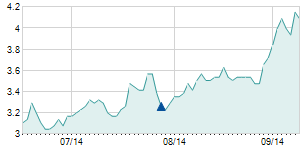 Closing price on 9/14/2017
