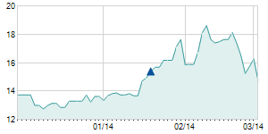 Closing price on 2/14/2020