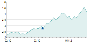 Closing price on 4/4/2016