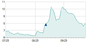 Closing price on 12/8/2025
