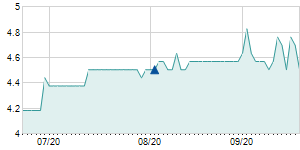 | 12/8/2021 | 0.00 / 0.00% | 9.50 | 9.50 | 9.20 | 9.50 | 9.27 | 9.50 | 42,500 |   |