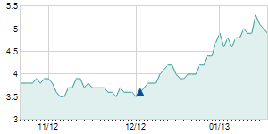 | 10/1/2012 | -1.00 / -2.64% | 37.40 | 37.60 | 36.70 | 36.90 | 36.90 | 4.06 | 137,380 |   |  |