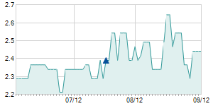 | 10/10/2022 | +0.14 / +1.15% | 12.15 | 12.31 | 11.95 | 12.30 | 12.15 | 12.30 | 78,200 |   |