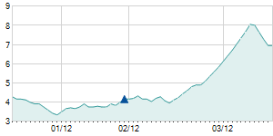 | 3/16/2017 | 0.00 / 0.00% | 12.10 | 12.30 | 11.70 | 12.00 | 11.82 | 4.32 | 48,230 |   |