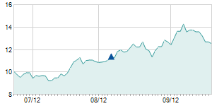 Closing price on 9/11/2015