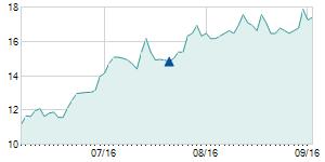 Closing price on 8/16/2019