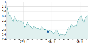 | 12/6/2013 | -0.20 / -4.76% | 4.40 | 4.60 | 4.00 | 4.00 | 4.44 | 1.61 | 747,800 |   |