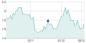 | 9/22/2014 | -0.20 / -4.55% | 4.40 | 4.50 | 4.20 | 4.20 | 4.33 | 1.69 | 175,500 |   |