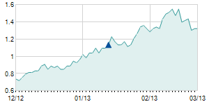 | 3/19/2014 | +0.10 / +1.75% | 5.70 | 5.80 | 5.50 | 5.80 | 5.67 | 2.33 | 254,100 |   |