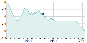 | 3/6/2015 | +0.50 / +4.39% | 11.50 | 12.00 | 11.40 | 11.90 | 11.90 | 3.79 | 142,940 |   |